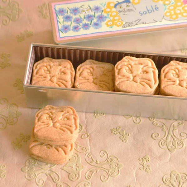 こちらはとってもおしゃれな猫型サブレの缶です♪