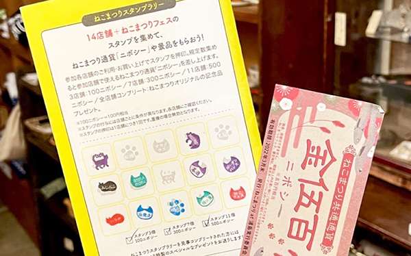 参加店舗を巡ってスタンプを集めると、ねこまつり通貨「ニボシー(100ニボシー=100円相当)」がもらえます。