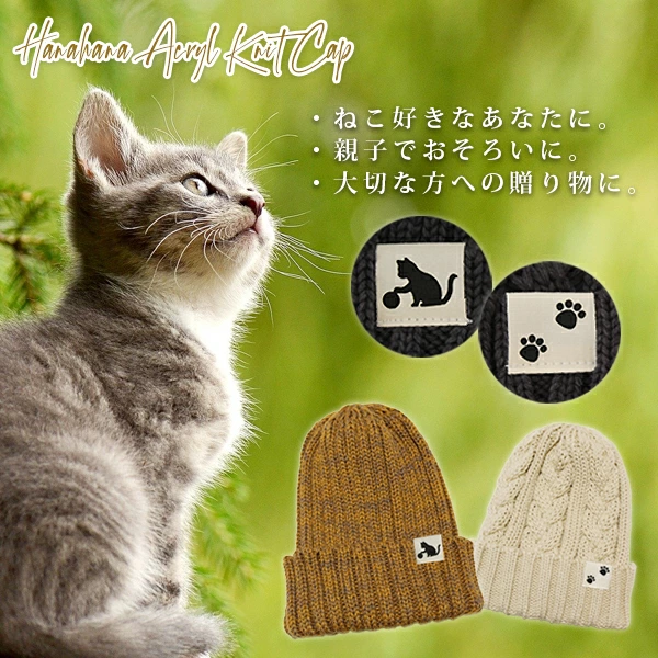 次にご紹介するのは、これからの季節にぴったりな猫モチーフのニット帽です。このニット帽には、小さな猫や猫の足跡のシルエットがデザインされており、シンプルながらも可愛らしさを演出。秋から冬にかけて活躍すること間違いなしのアイテムです。さらに、サイズとカラーが豊富に揃っているため、自分好みのデザインを見つけることができます。普段使いはもちろん、猫好きの友人への贈り物にもぴったりの、あたたかさと遊び心を兼ね備えたニット帽です。