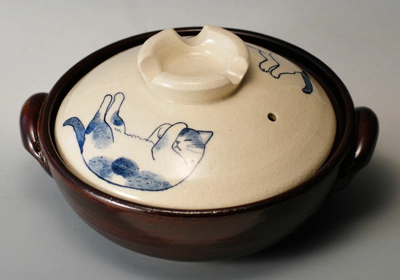 こちらの土鍋は蓋に寝ている猫ちゃんが描かれています。シンプルながらも可愛いいその姿にほっこりしちゃいますね。