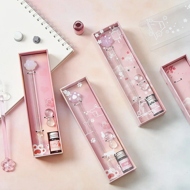 繊細な美しさと書き心地の良さで人気のガラスペン。今回紹介するのは、ペン先の反対側に猫の足モチーフがあしらわれた、猫好きにはたまらないデザインの一本です。全体的にピンクを基調とした優しい色合いで、持っているだけで気分が上がります。ガラスならではの滑らかな書き心地は、日記や手紙を書く時間をより特別なものにしてくれそう。見た目の可愛さだけでなく、実用性も兼ね備えているので、自分用にはもちろん、大切な人へのプレゼントにもぴったりです。美しく輝くガラスペンで、猫の癒しを感じながら、特別なひとときを楽しんでみてはいかがでしょうか?