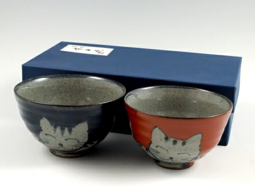 味わい深い和みの猫柄のお茶碗