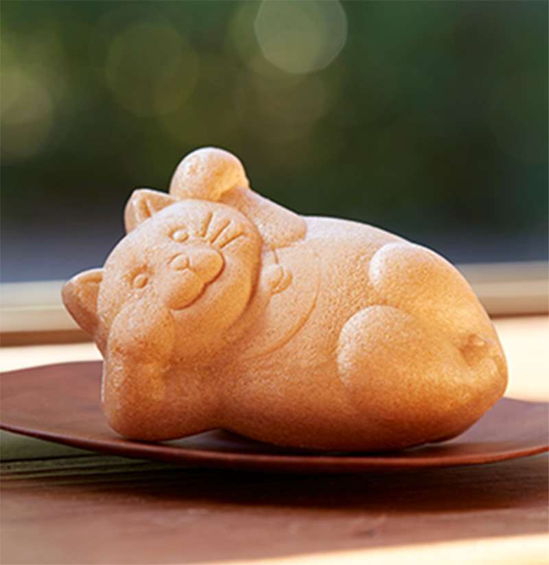 のんびり寝そべっている招き猫の形をした最中がとても可愛らしいです。