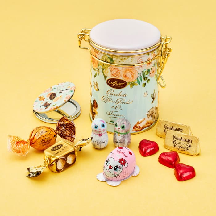 6つ目はカファレルの「ねこの日2023 チョコレート」をご紹介します。こちらはお花と猫ちゃんモチーフのフェミニンで可愛い缶が特徴的です。