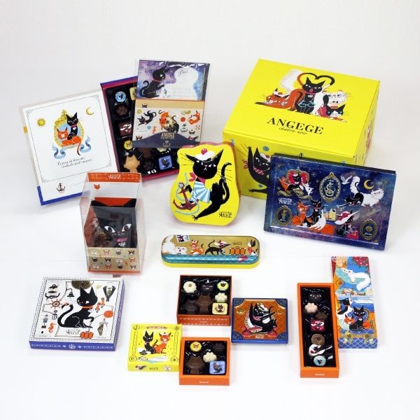 2つ目は同じくゴンチャロフの人気シリーズ「アンジュジュ」です。クロネコをモチーフにしたお洒落なデザインのケースやグッズ付きのものもあります。