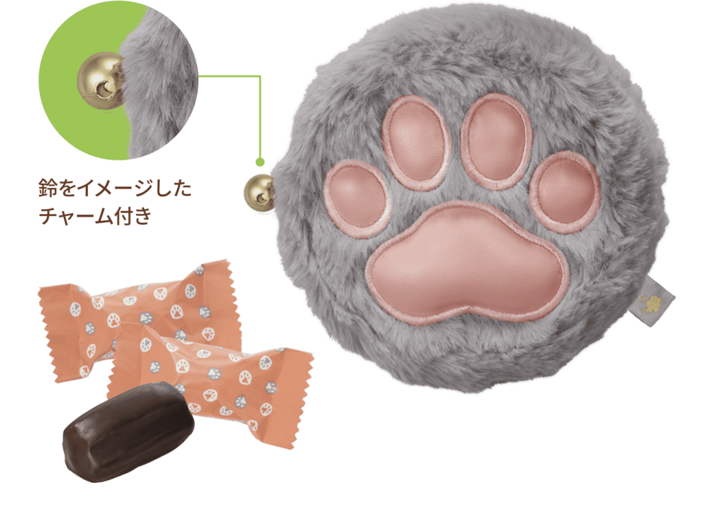 寝転がったネコちゃん型のチョコレートが愛らしいですね。こちらは肉球ポーチなど可愛いグッズが付いたチョコレートもあります。