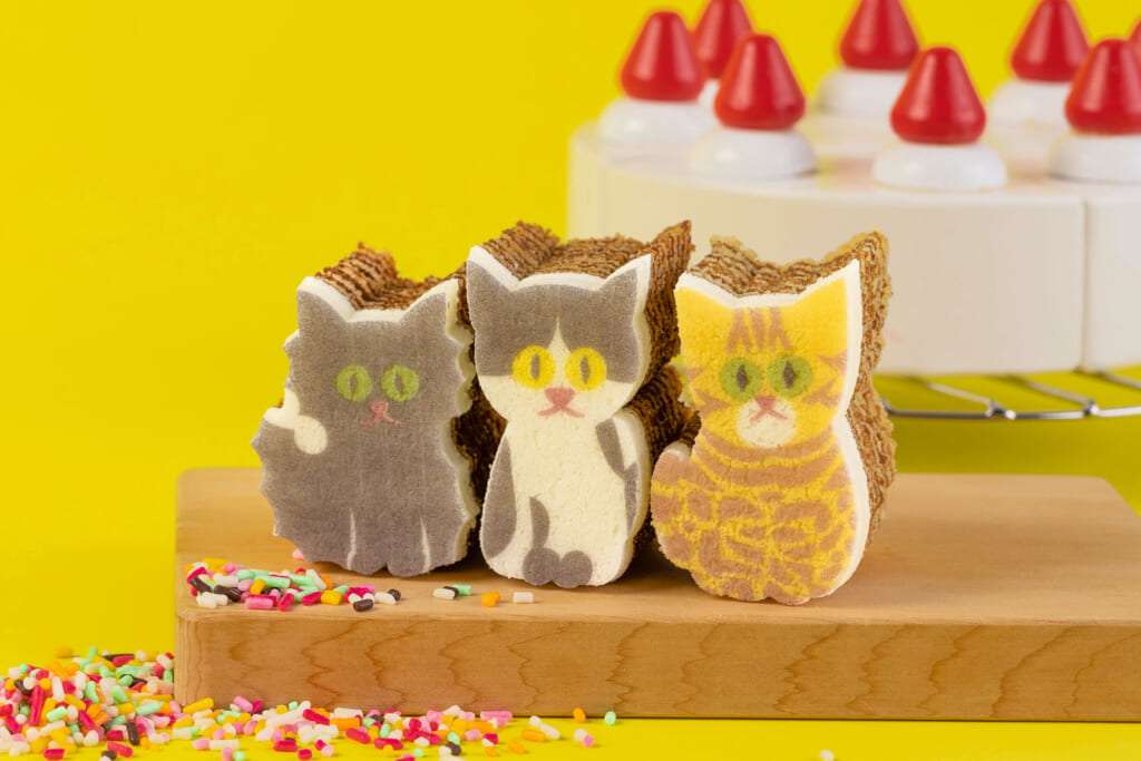 カタヌキヤは、型ぬきお菓子の洋菓子店。幾重にも焼き重ねられた平焼きバームクーヘン生地の上にしまねこ、くろねこ、ぶちねこ、ベンガルねこなど看板ねこちゃんたちが描かれ型抜きしながら食べられる体感型スイーツ。見た目の可愛さだけでなく、上手に型抜きができるか楽しめるのも子供たちに喜ばれそうです。