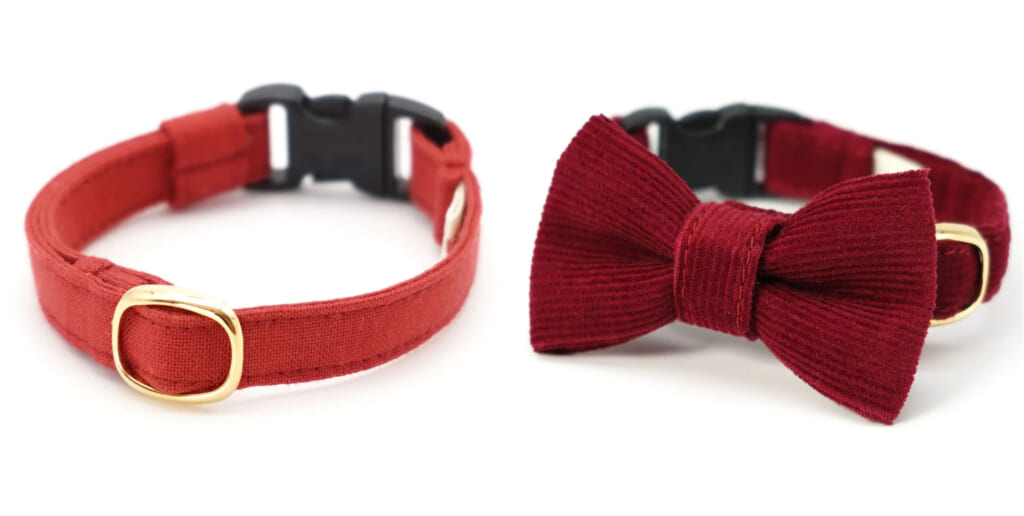 生地も綿からベロア調まで色々取り揃えているので夏は涼しげな首輪、冬はモコモコな首輪と季節に合わせて衣替えできます。