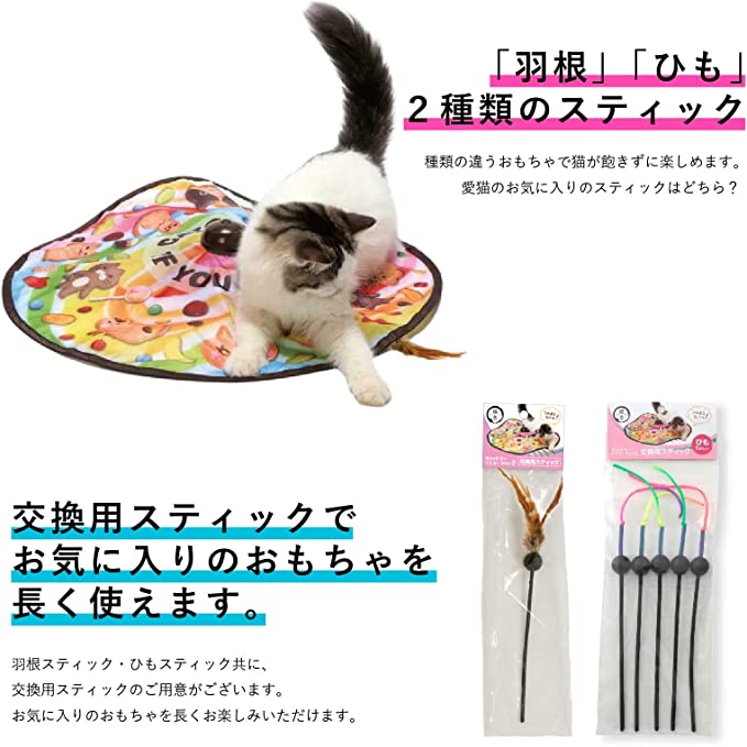 よくしなる竿で生きているような微妙な動きを演出する猫用おもちゃです。「カサカサ」「ブンブン」とネコちゃんの興味をそそる音が鳴りやすい素材を使用しています。