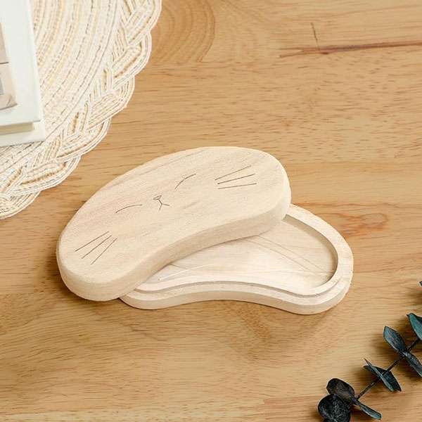 木の質感と猫のお顔の刻印がなんとも可愛い一品です。