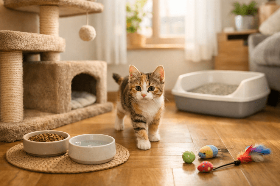 | トイレ | 最初は1つでOK。猫砂は少量で試す |