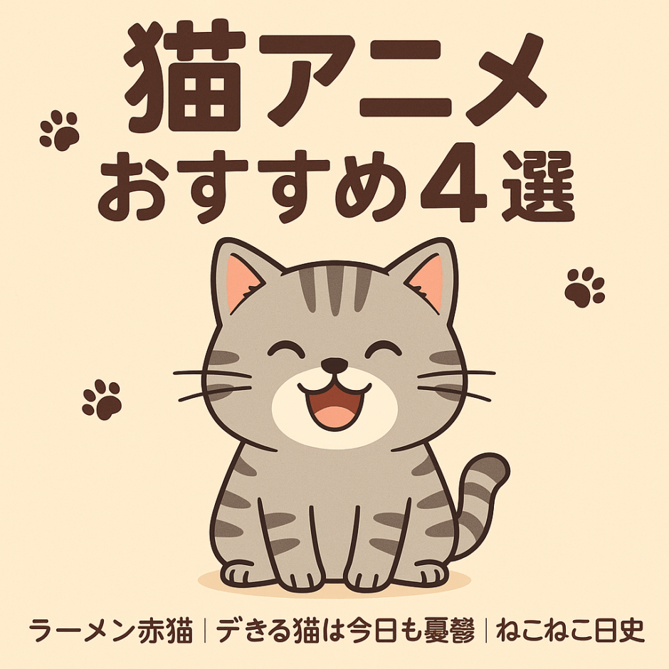 本記事では 『ラーメン赤猫』『デキる猫は今日も憂鬱』『ねこねこ日本史』『こねこのチー』 の人気猫アニメ4作品を厳選して紹介します。